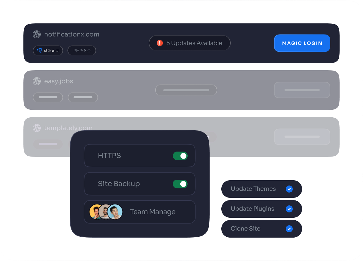 xCloud Team Management feature streamlines teamwork, server control, and website access for effortless development process.