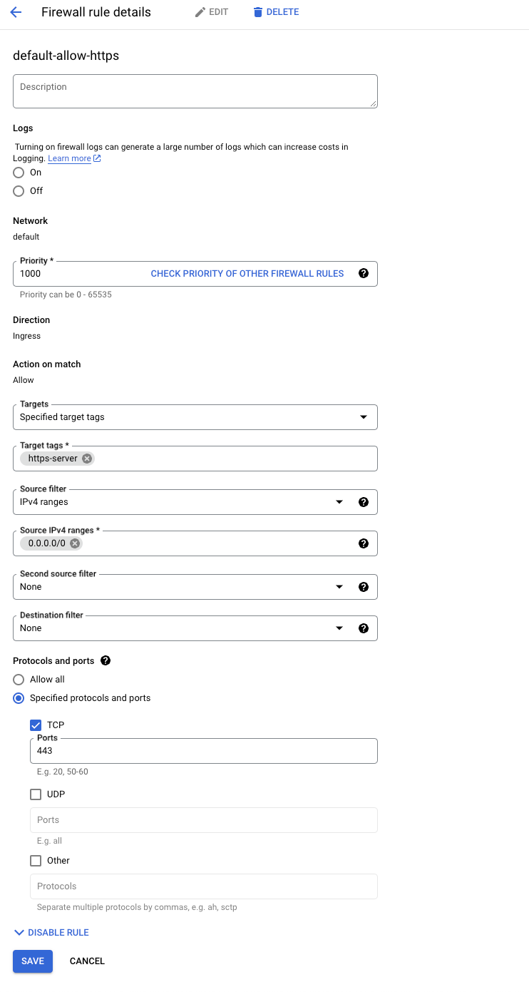Create the rules: โdefault-allow-httpsโ rule.