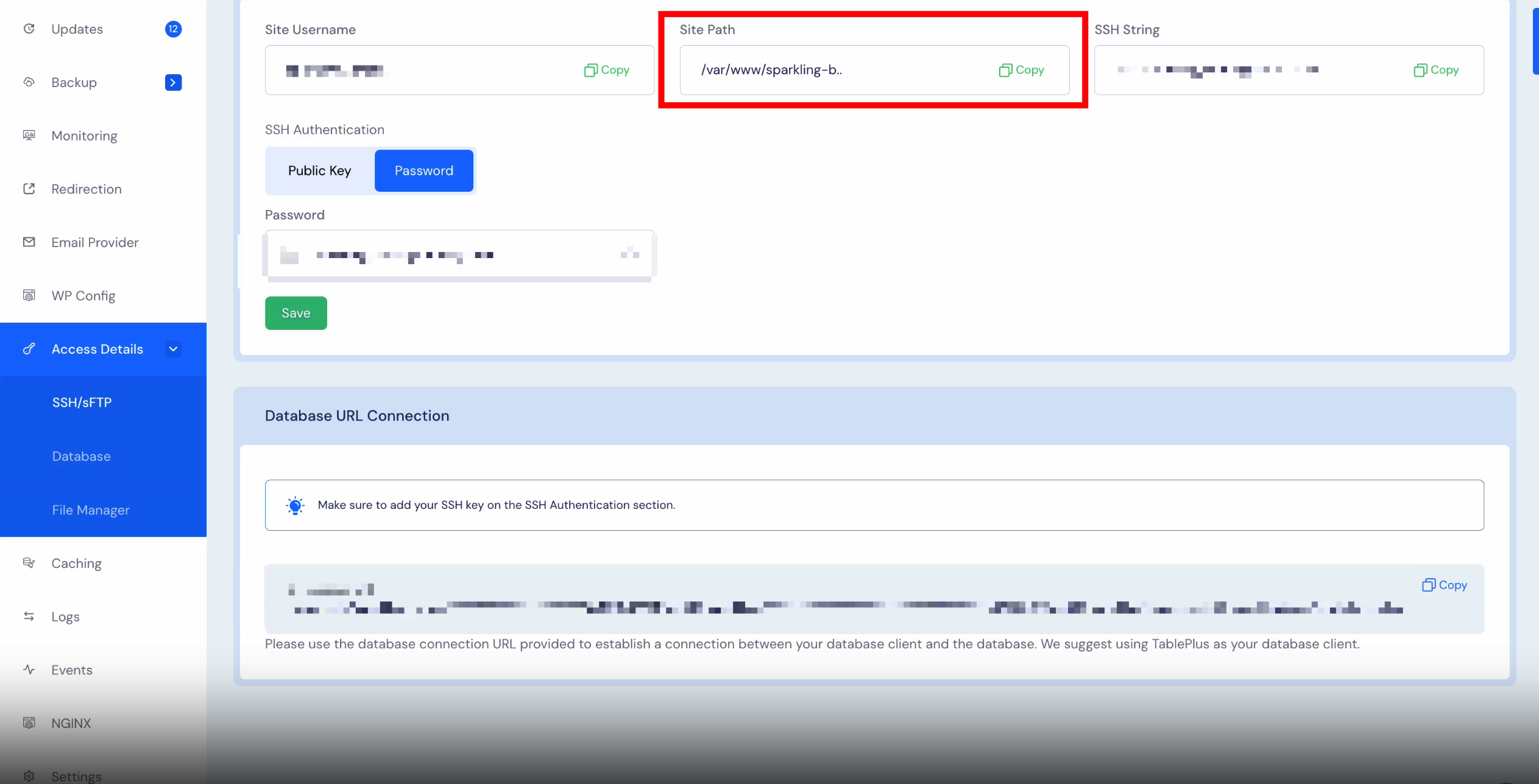 Step 1: Collect SFTP Credentials from Site Dashboard #