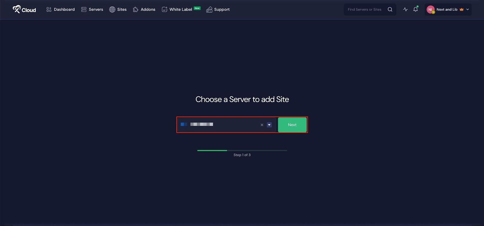 ย Then choose your โ€˜Serverโ€™ from your dropdown and click on the โ€˜Nextโ€™ button to proceed.ย