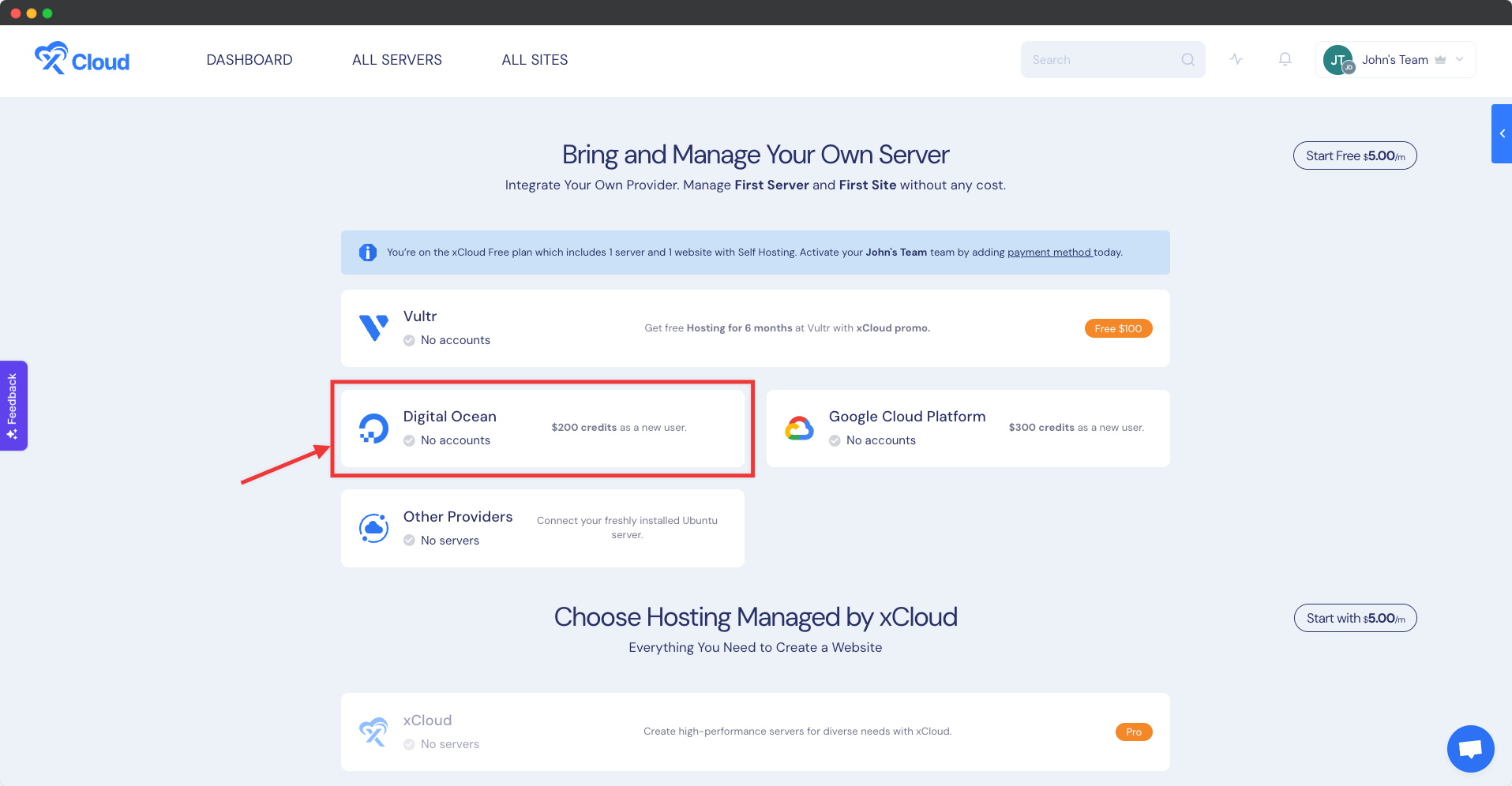 If you have already an account please visit our app URL below. Now you are ready to set up your server with Digital Ocean in xCloud.