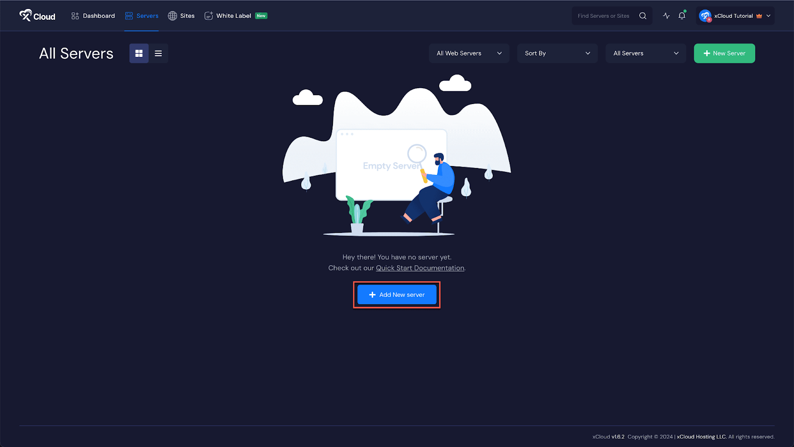 After logging in to your xCloud account, start by adding a new server by clicking on the โAdd New Serverโ button from your server dashboard or you can add it from the Server Provider Integration Page.