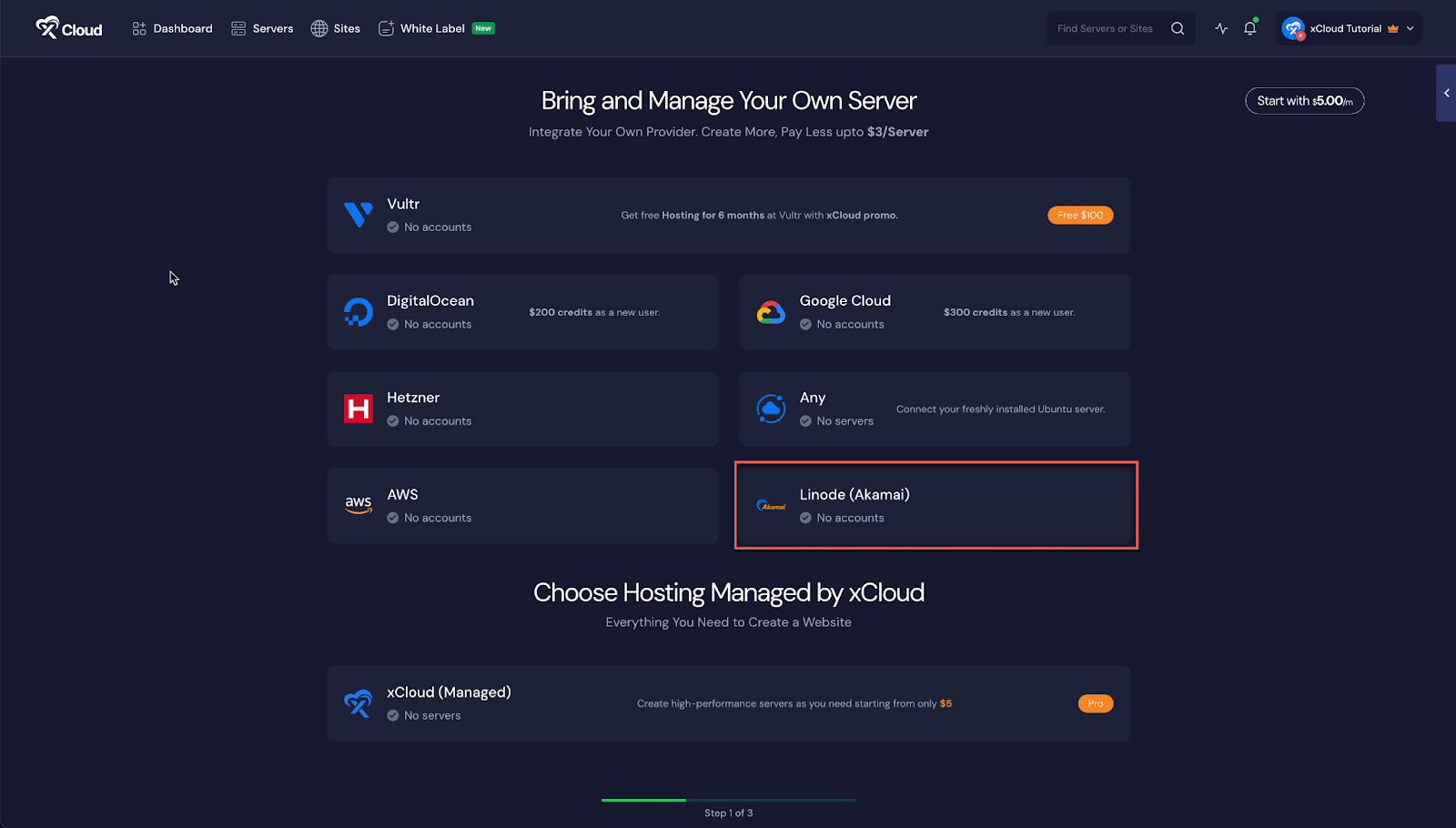 It will start creating a Linode server with xCloud within a while and if you go to the โServersโ from the menu you can see your created server and create as many sites as you want under this server.