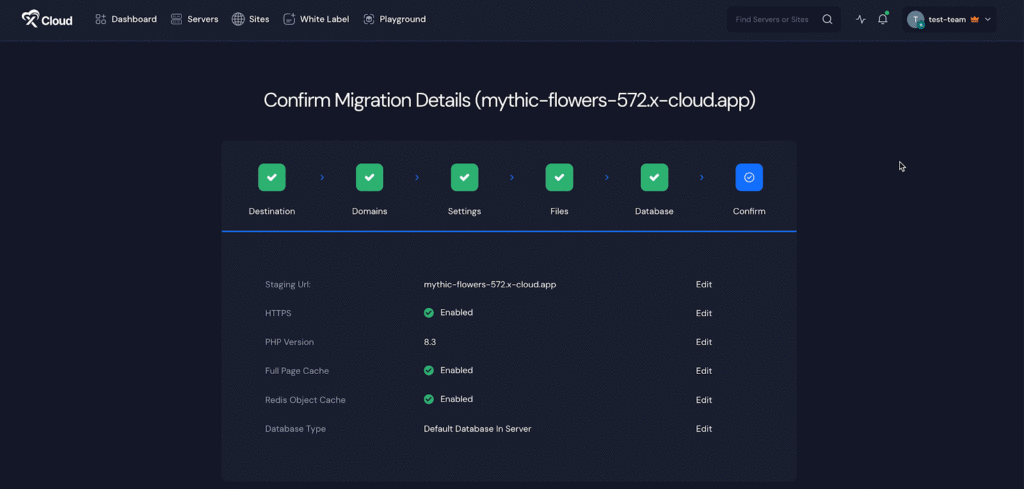 Now, if you are ready to go for uploading an existing WordPress website with xCloud, click on the โStartโ button. Within a few moments, your WordPress website will be uploaded to xCloud automatically. You will see the following screen while uploading. Once the migration is successfully complete, you will see the following screen. You go to the site dashboard from there.