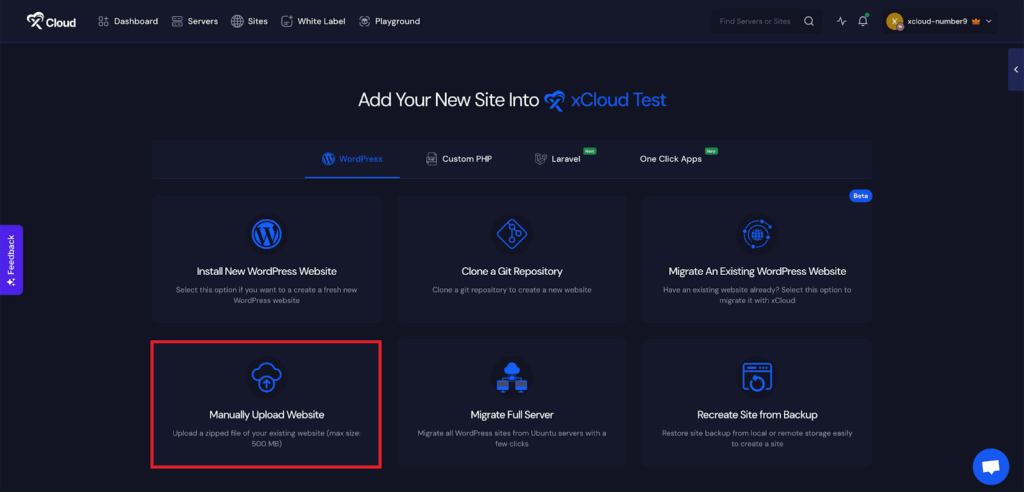If you want to manually upload a WordPress website, with xCloud, you can manually upload WordPress Websites On xCloud without any hassle. Follow the step-by-step guide below to get started and upload WordPress websites with SFTP easily:
