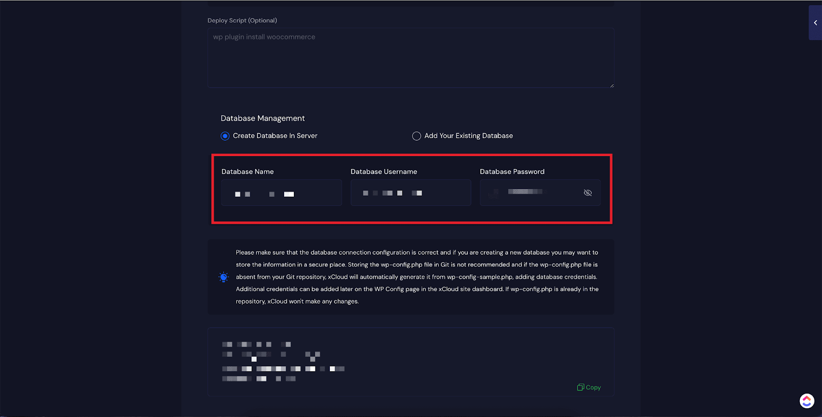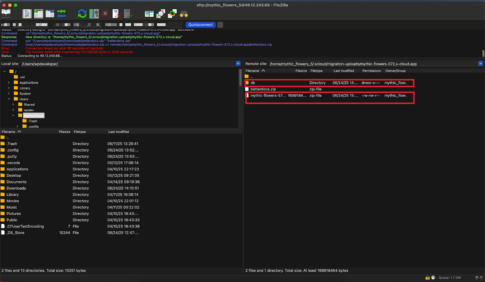 Then upload your site file to the โUploaded pathโ provided in the xCloud dashboard, and update the database file into the โdbโ folder using the SFTP client.