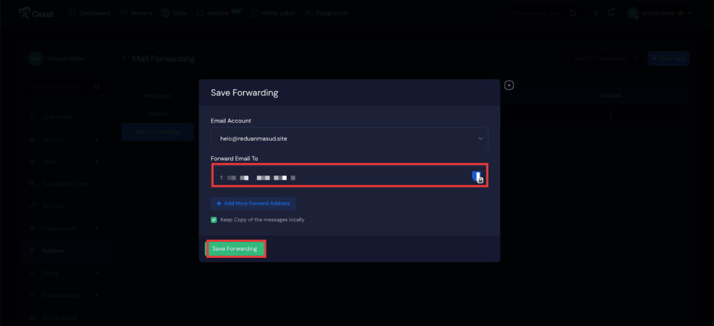 Follow theย steps below to set up email forwarding with xCloud MailBox Addon: