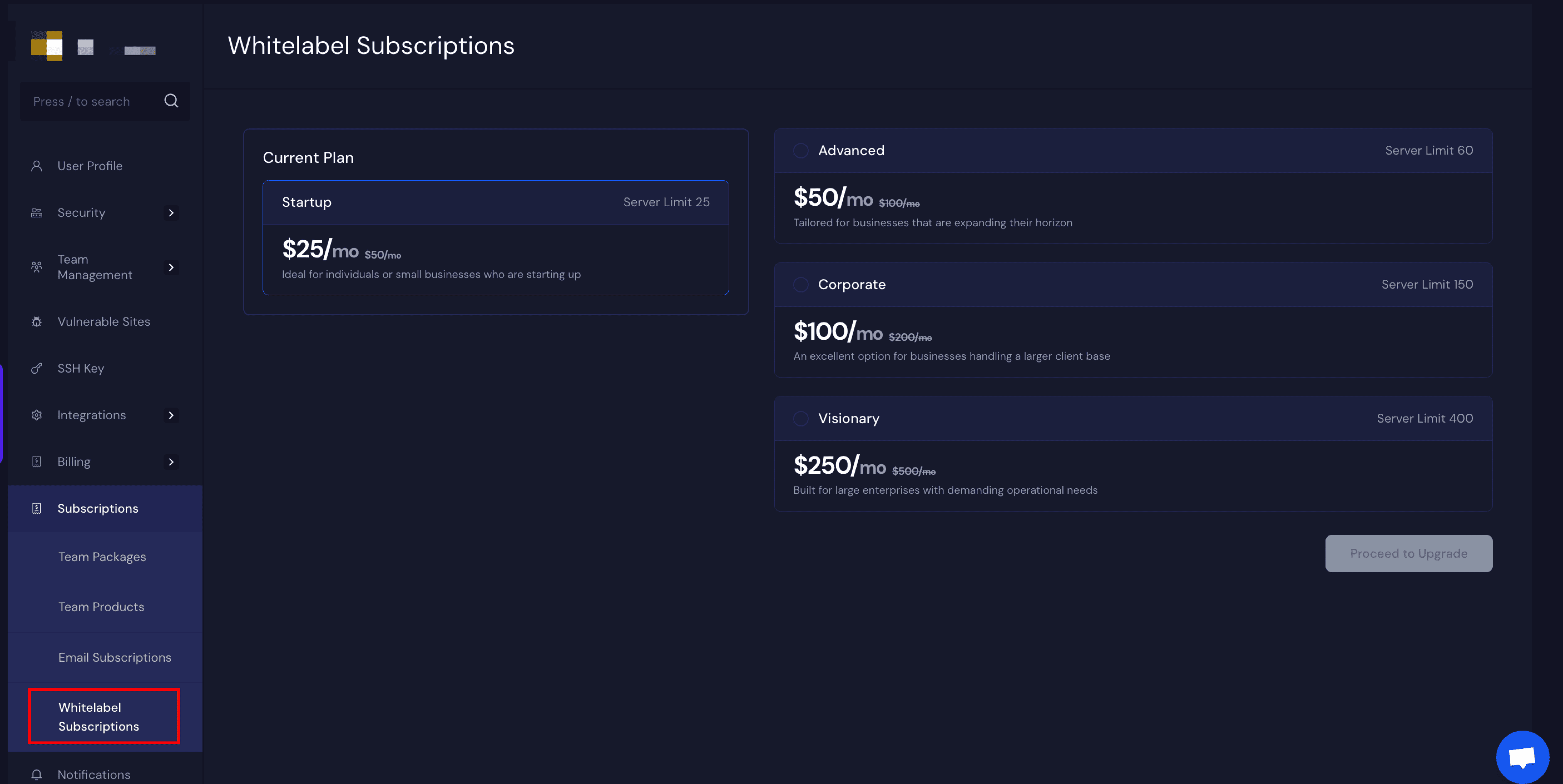 From here, choose from four different subscription plans for xCloud White Label control panel. Check out the options, select the plan that best suits your needs, and then click on the โ€˜Pay Nowโ€™ button to proceed.