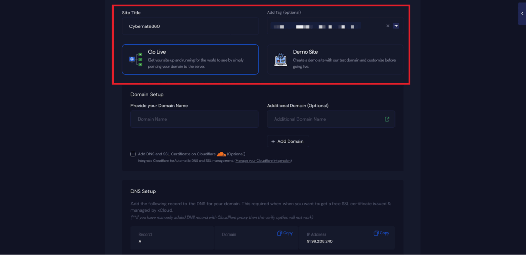 Step 4: Provision xCloud Site Using Cloudflare to Update DNS #