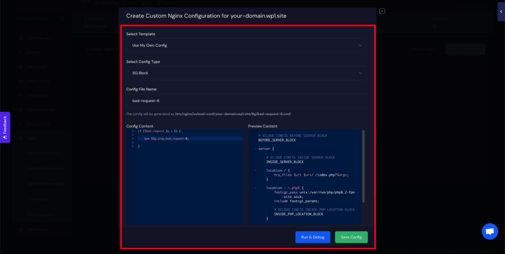 Step 4: Whitelist Rules via xCloud Custom NGINX (For Sites) #