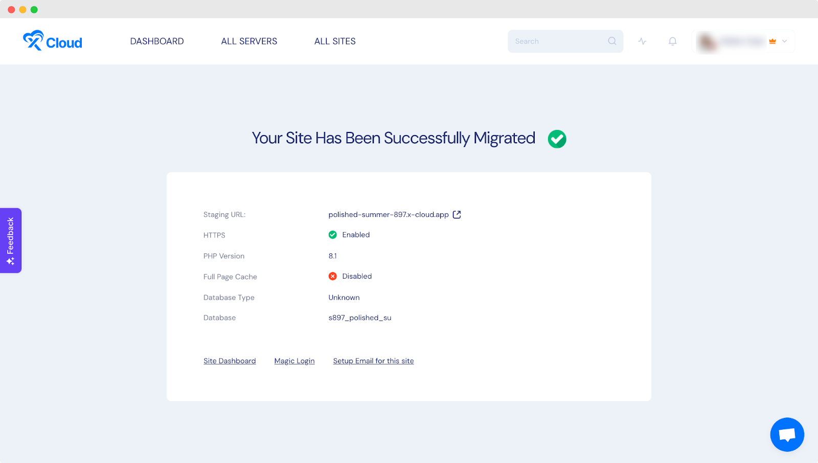 Once the migration is complete you can go to your site dashboard from the next screen.