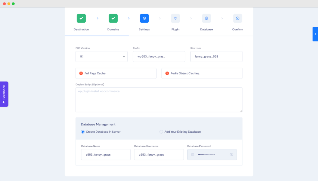Configure your preferred database setup as you need. After that, click on the ‘Next’ button to start the migration process.
