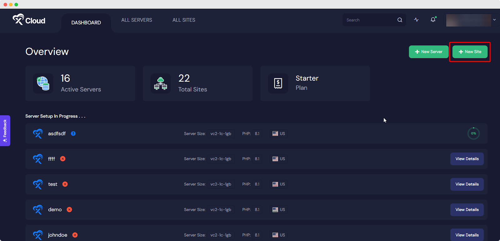 First of all, log in to xCloud and click on ‘Add New Site’ from the xCloud dashboard. Then choose the server where you want to migrate your website.