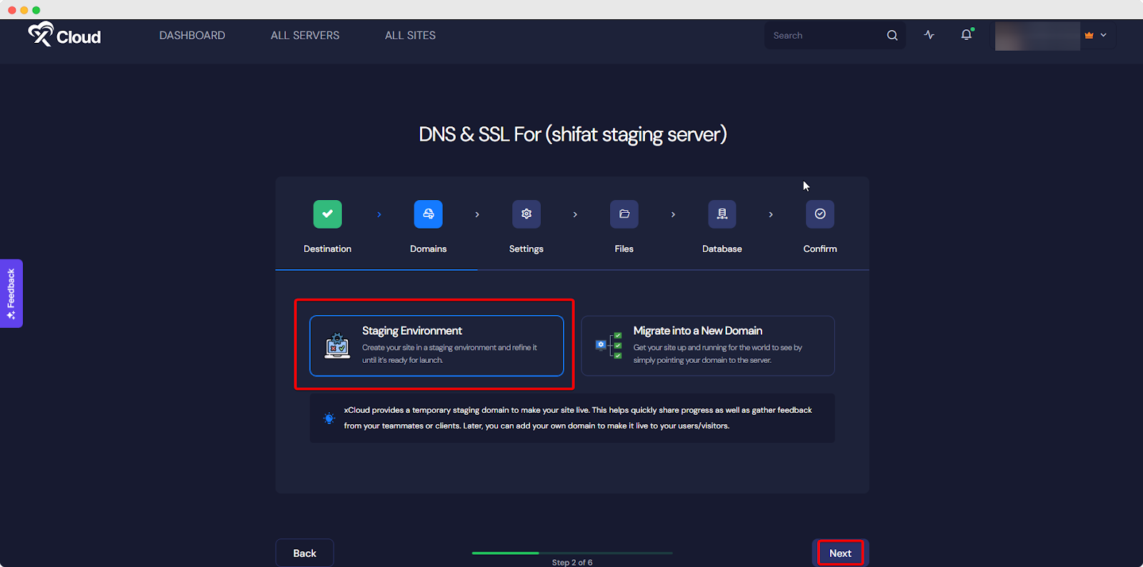 First of all, log in to your xCloud account and create a destination website or staging website. Once you have a destination or staging website ready now you can go to the next step.