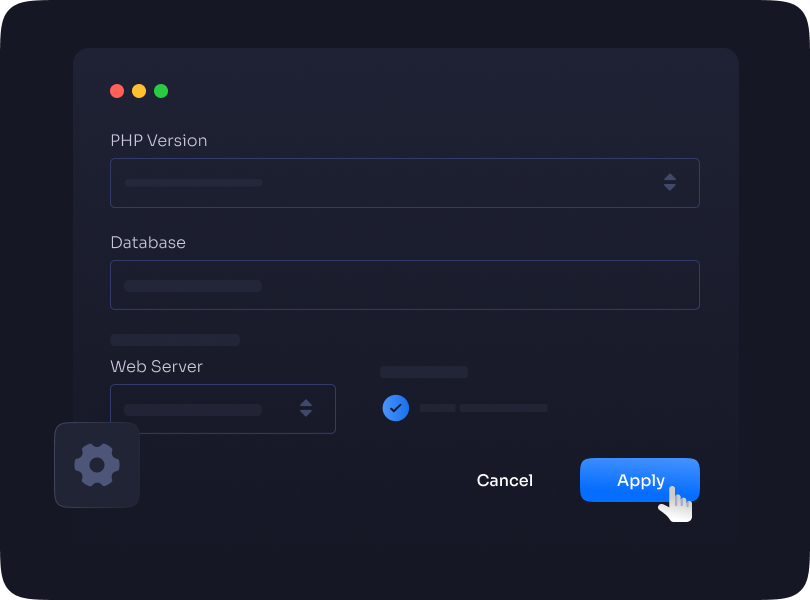 Set up your preferred PHP version, database, and other essential settings tailored to your app’s needs.