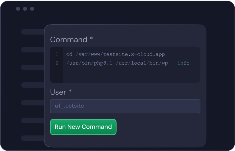 Run commands and automate tasks in xCloud. Track history and re-run any command with one click.